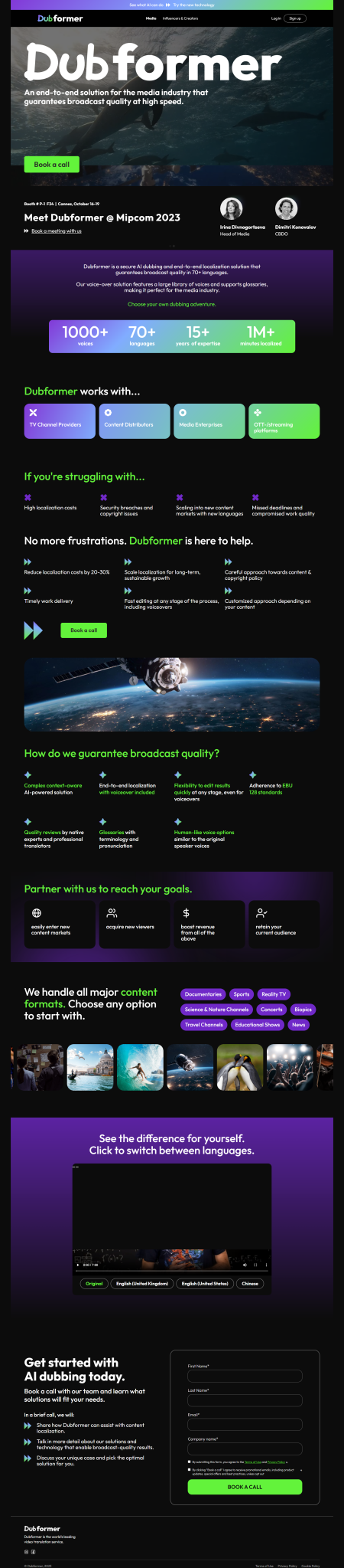 Dubformer.ai, formerly known as Neurodub, is an AI-powered software designed to deliver fully translated and localized video content, ready for media broadcasting.